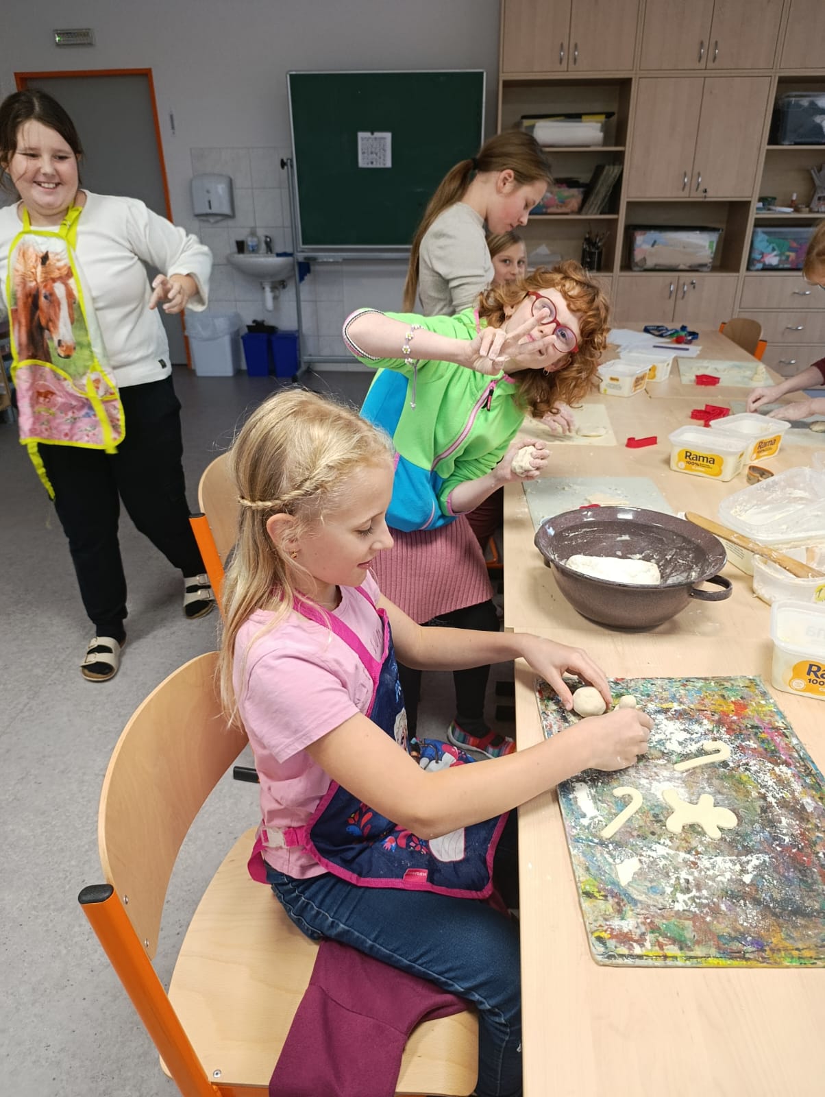 Adventní čas se nezadržitelně blíží a žáci se ve družině pustili do výroby vánočních ozdob. Nejprve si vytvořili sami "těsto" a pak už se pustili do tvoření. A že se jim dílo krásně vydařilo, můžete vidět na fotkách.