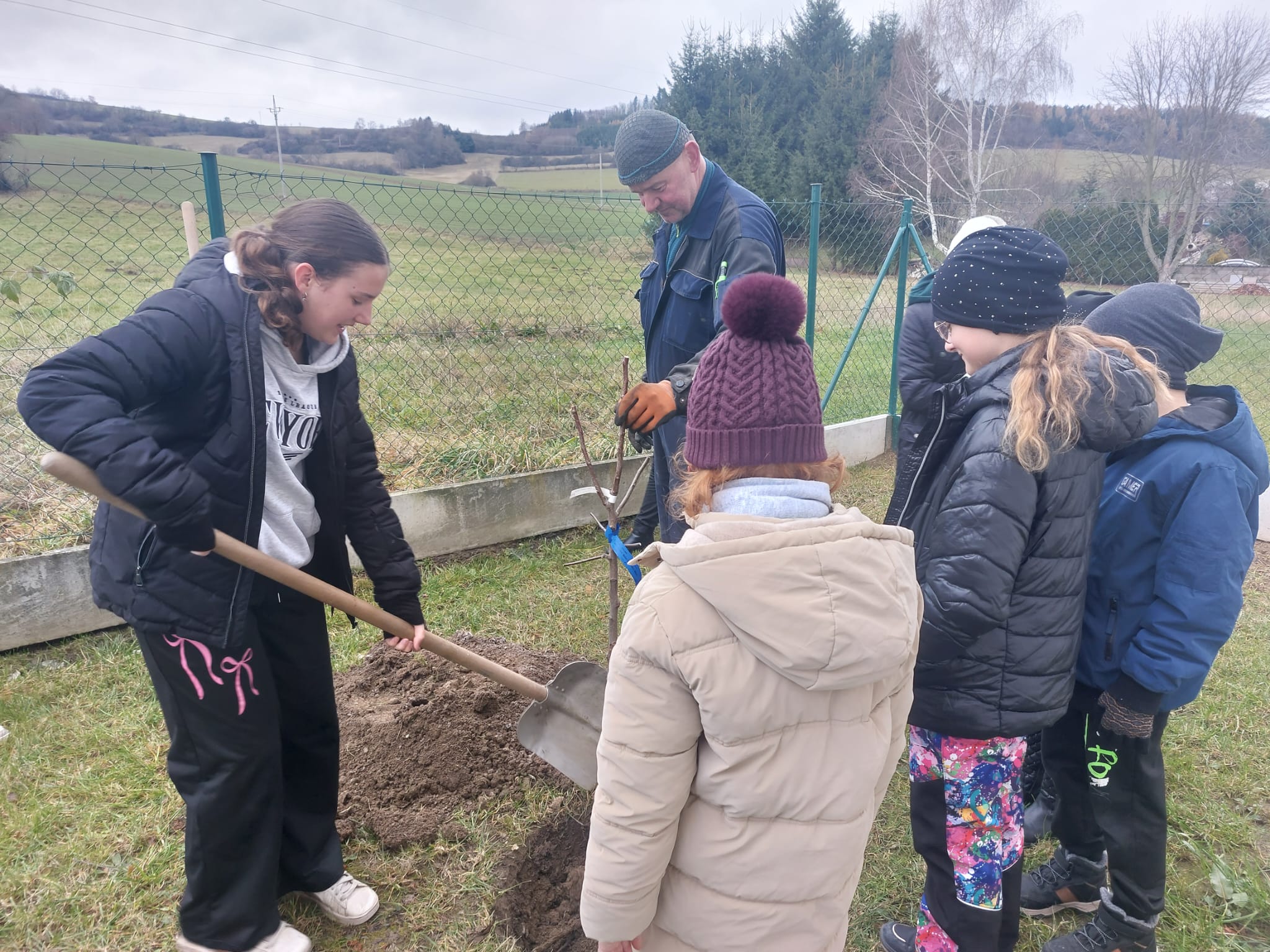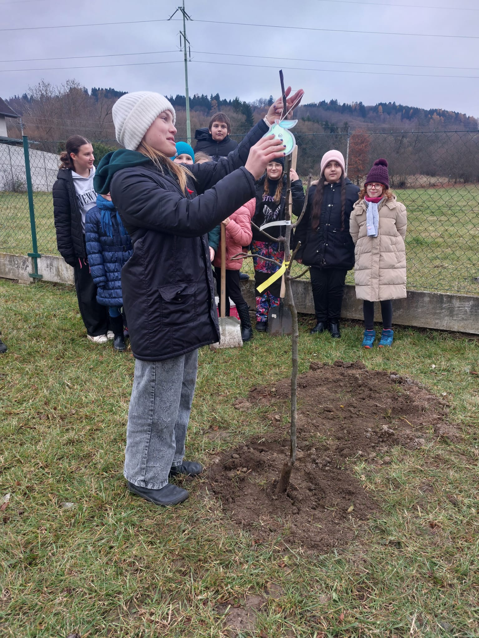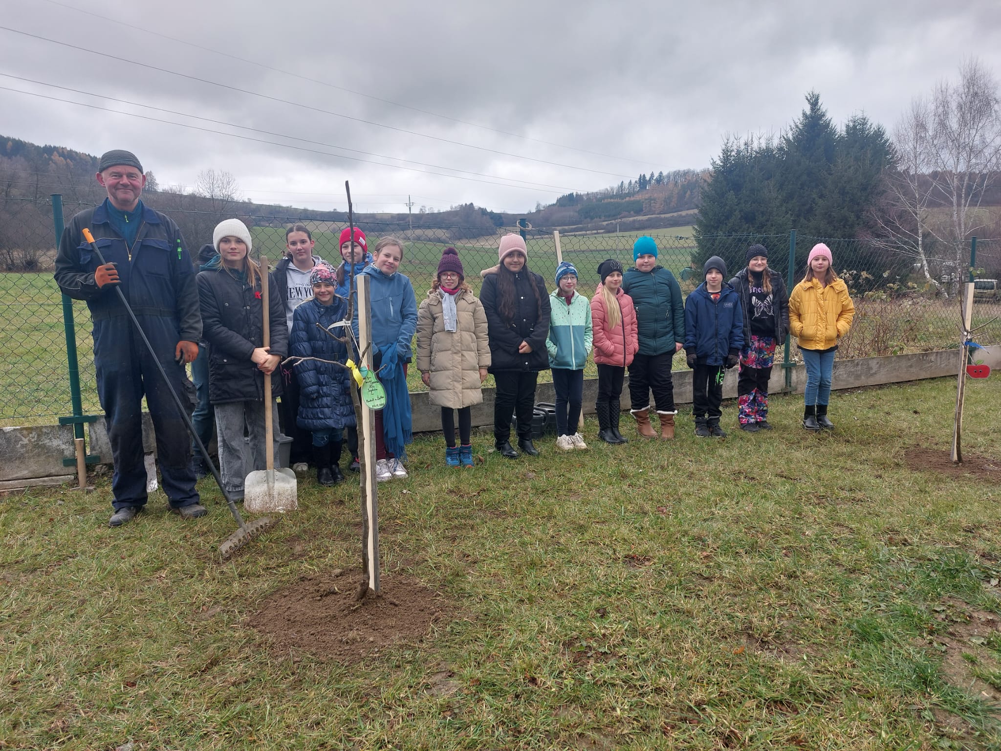 Ve čtvrtek 20. 11. měli žáci 4. a 5. ročníku jedinečnou příležitost zasadit si na zahradě svůj strom. Všichni se práce chopili s nadšením, žáci 5. ročníku stromečkům řekli svá přání a na závěr všichni zazpívali. Až se sem za pár let všichni přijdou podívat, tak si budou moci utrhnout jablíčko, hrušku nebo švestku a zavzpomínat si na časy strávené u nás ve škole.