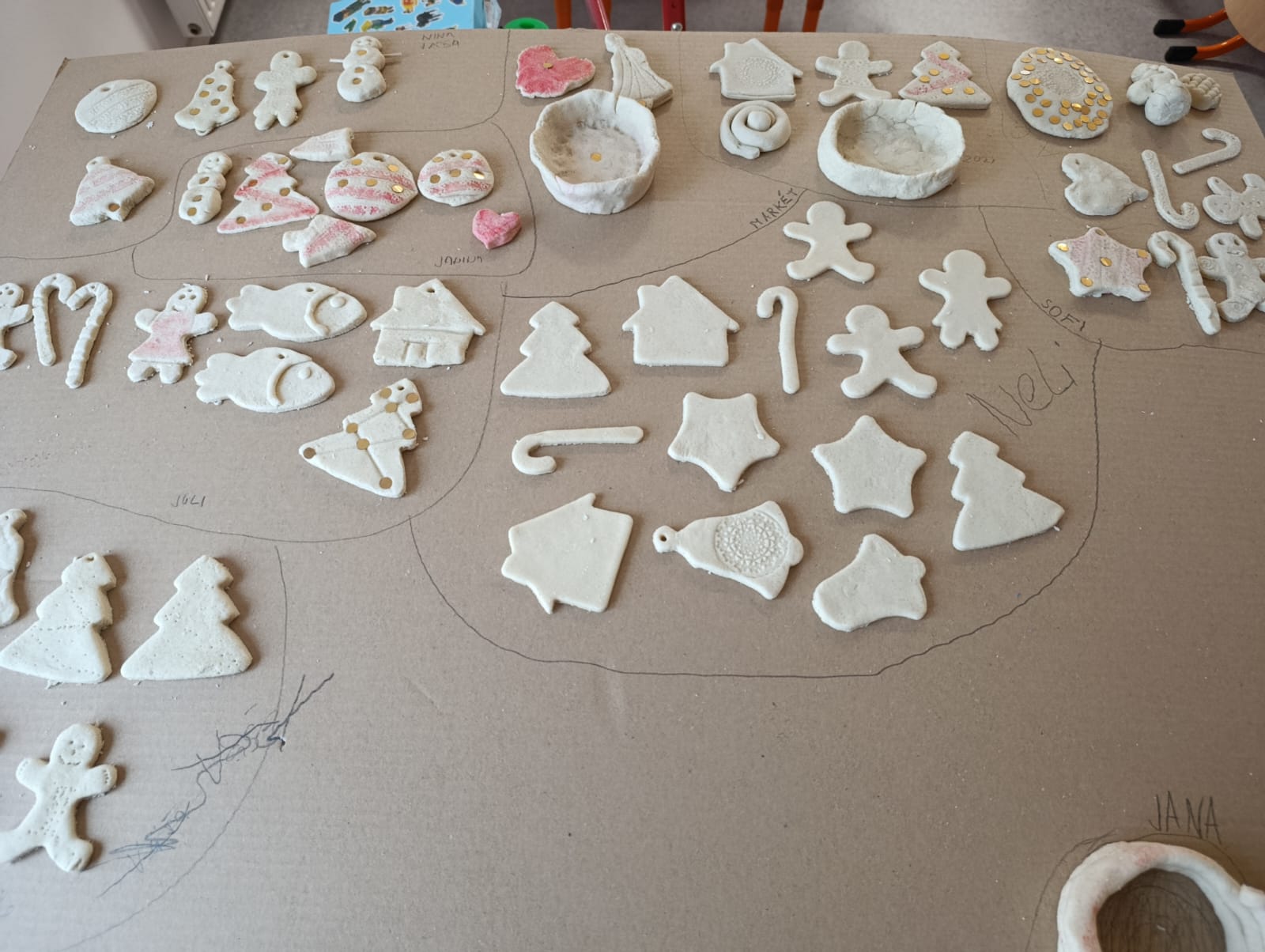 Adventní čas se nezadržitelně blíží a žáci se ve družině pustili do výroby vánočních ozdob. Nejprve si vytvořili sami "těsto" a pak už se pustili do tvoření. A že se jim dílo krásně vydařilo, můžete vidět na fotkách.