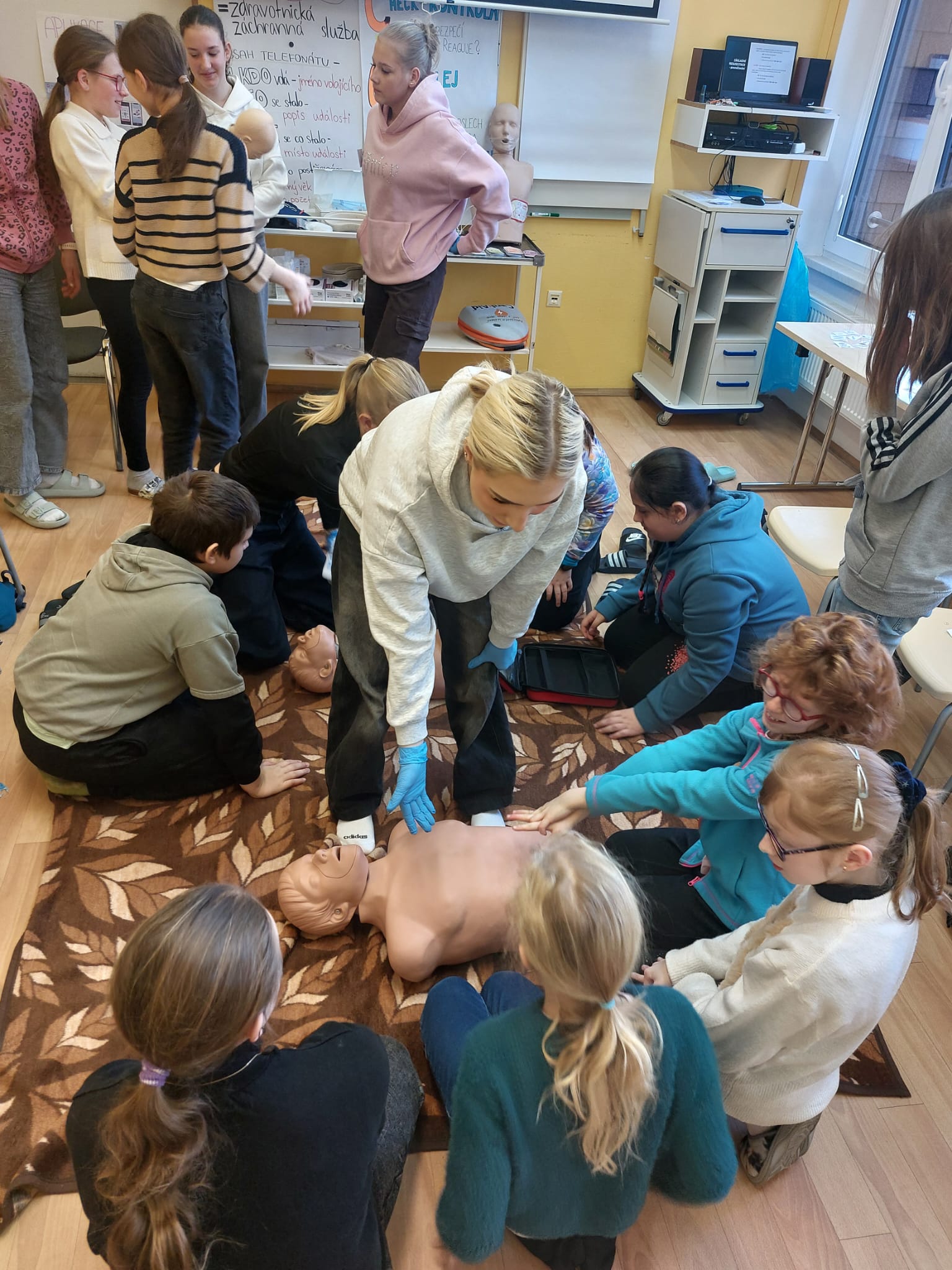V pátek 20. 2. navštívili žáci 3. - 5. ročníku tradiční akci Střední zdravotnické školy v Klatovech Týden pro zdraví. V rámci této akce se zúčastnili přednášky na téma Pohyb zdraví, kterou si připravili studenti střední školy, a poté si naši žáci oživily svoje znalosti první pomoci.
